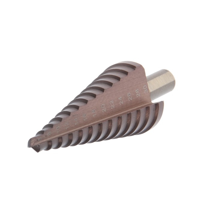 Сверло ступенчатое ТУНДРА, HSS-Co, трехгранный хвостовик, 6 - 30 мм
