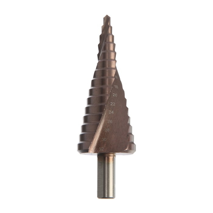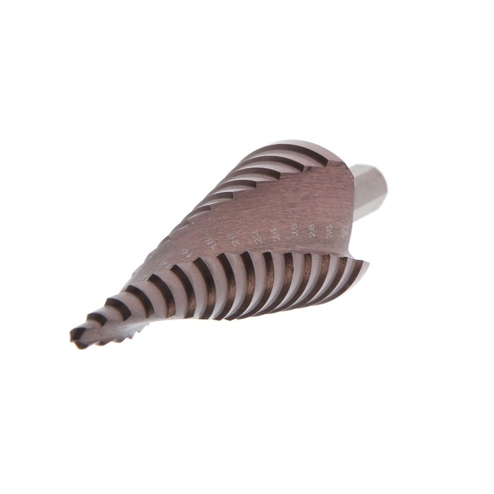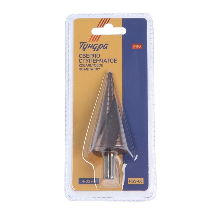 Сверло ступенчатое ТУНДРА ПРОФИ, HSS-Co, спиральный профиль, трехгранный хвостовик, 4-32 мм