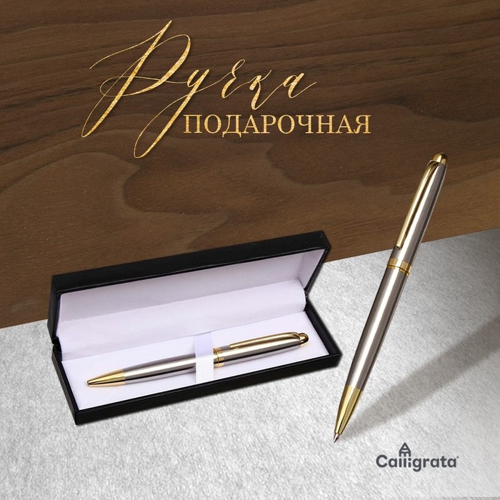 Ручка подарочная, шариковая "Классика" в кожзам футляре, поворотная, корпус серебро с золотым