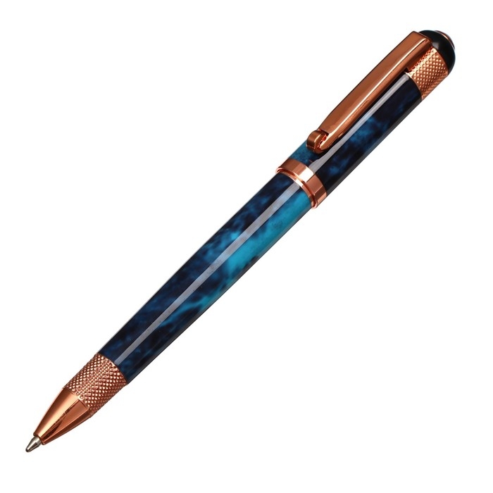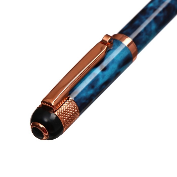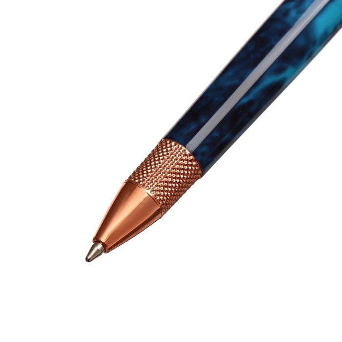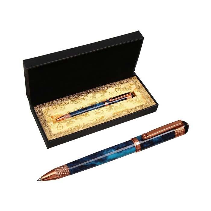 Ручка подарочная, шариковая "Вензура" в кожзам футляре, поворотная, корпус мрамор синий с золотым