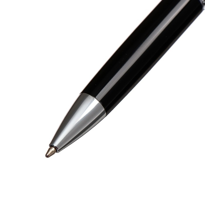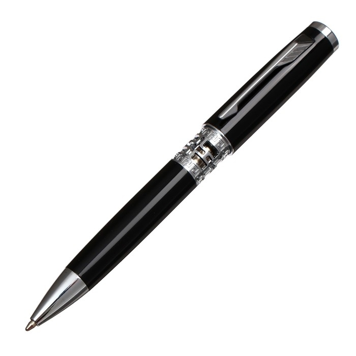 Ручка шариковая, подарочная, в пластиковом футляре, поворотная, "Бизнес", чёрная с серебристыми вставками