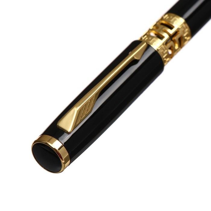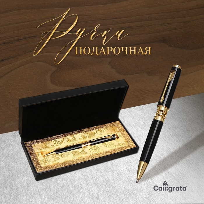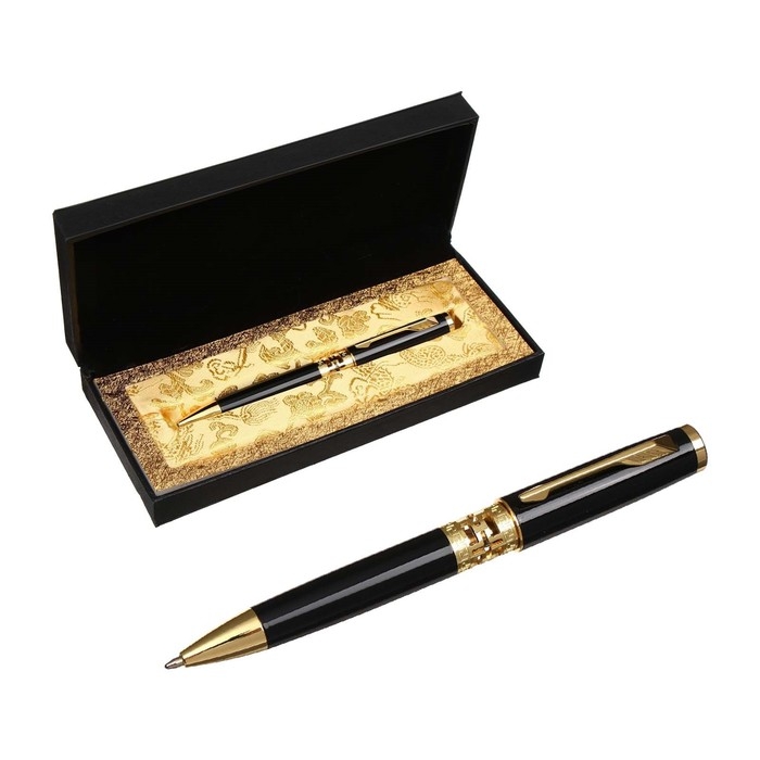 Ручка подарочная, шариковая "Вензура" в кожзам футляре, поворотная, корпус черный с золотым