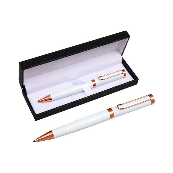 Ручка подарочная, шариковая "Норфок" в кожзам футляре, поворотная, корпус белый с золотым