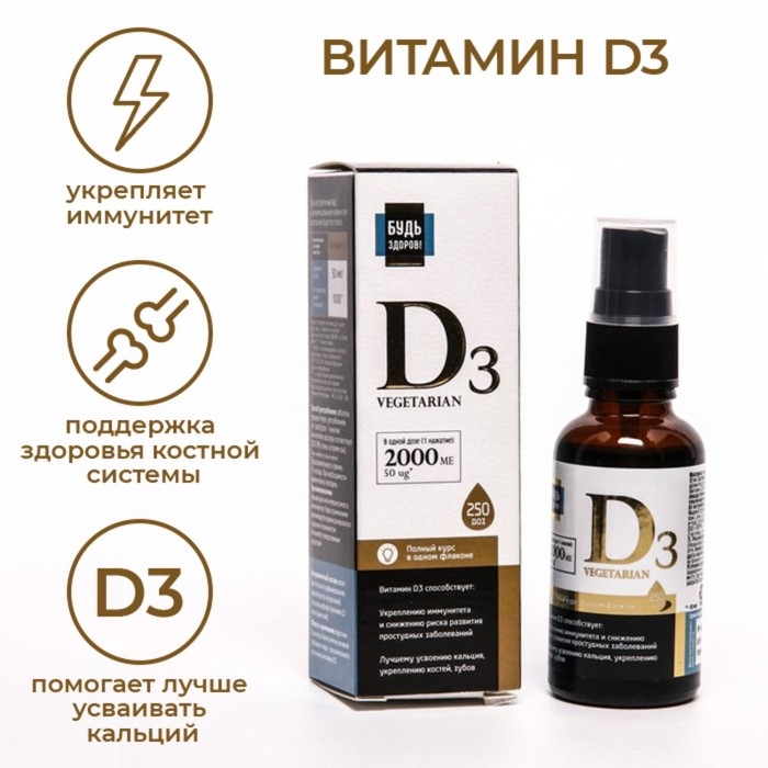 Витамин Д3 2000 МЕ Будь Здоров! с дозатором, 30 мл
