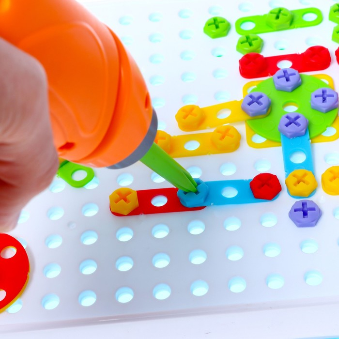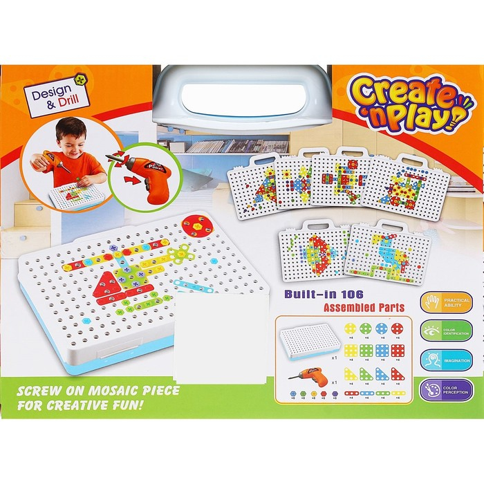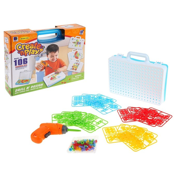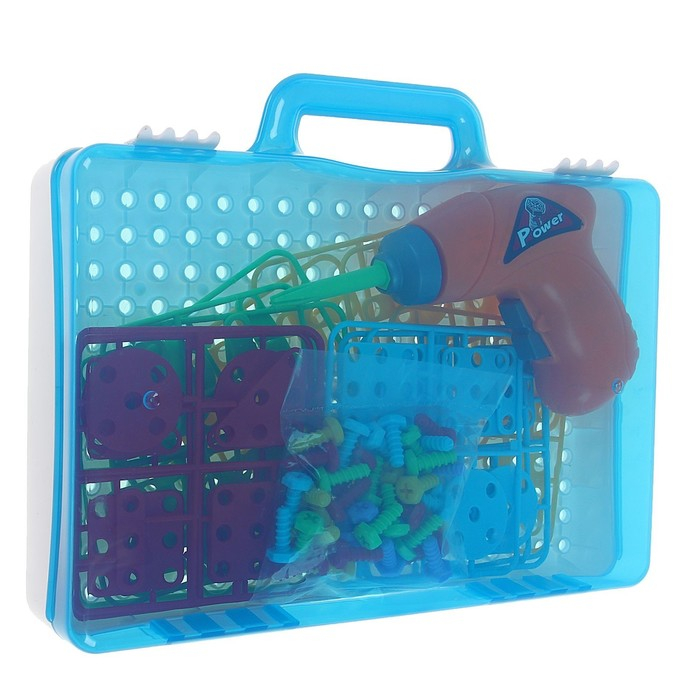 Пластмассовый конструктор в чемоданчике «Создавай и играй», с электрическим шуруповёртом, 106 деталей