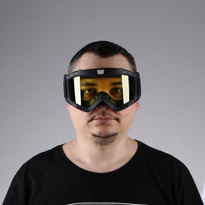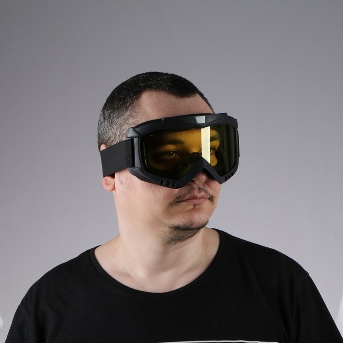Очки-маска для езды на мототехнике, разборные, визор желтый, цвет черный