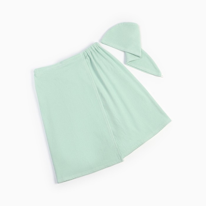 Набор для сауны Экономь и Я:полотенце-парео 68*150см + чалма,цв.св-бирюзовый,100%хл,320 г/м2