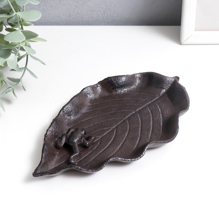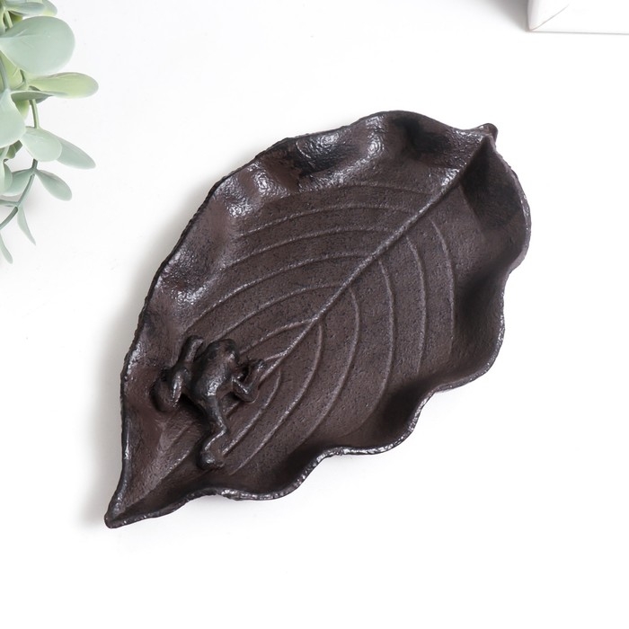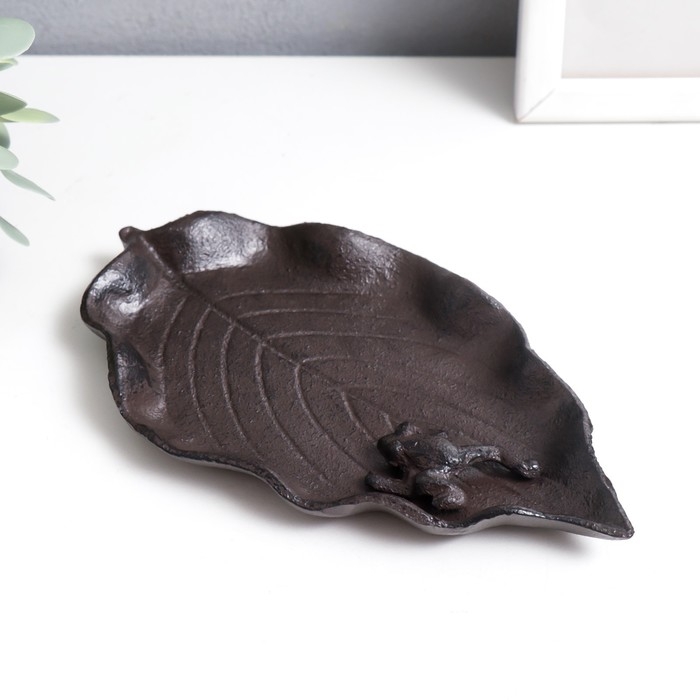 Сувенир чугун подставка "Лягушка на листе" 1х19х11 см