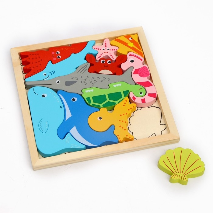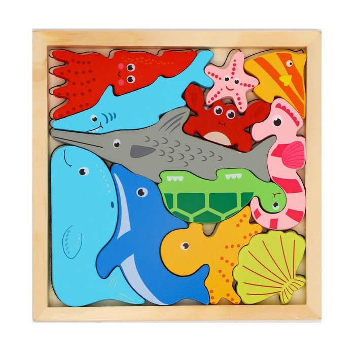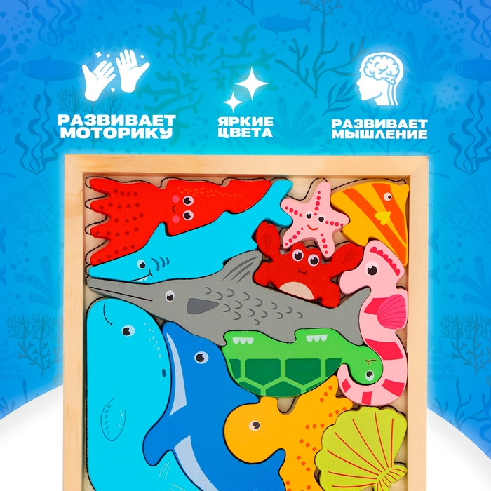 Детский развивающий пазл в рамке «Морские животные» 16,6 × 16,6 × 1,2 см