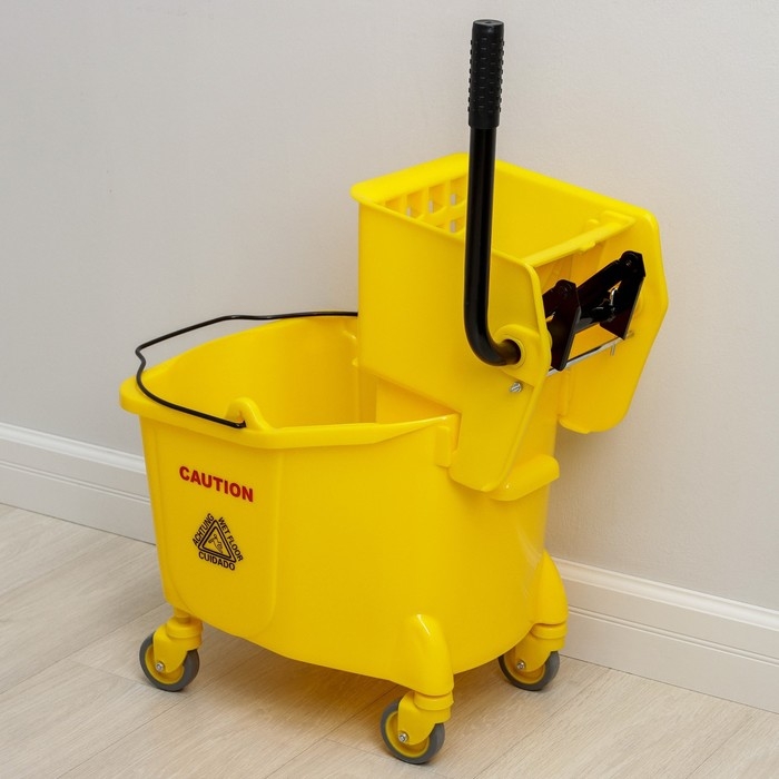 Тележка уборочная с механическим отжимом, 36 л, цвет жёлтый