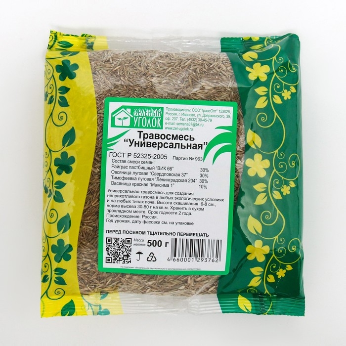 Газонная травосмесь "Зеленый уголок", универсальная, 0,5 кг