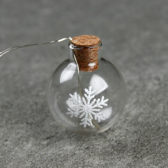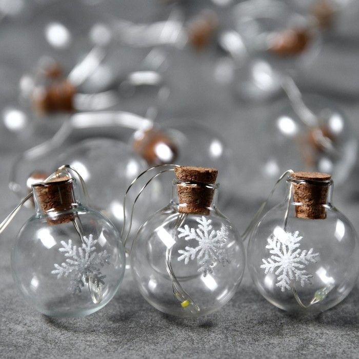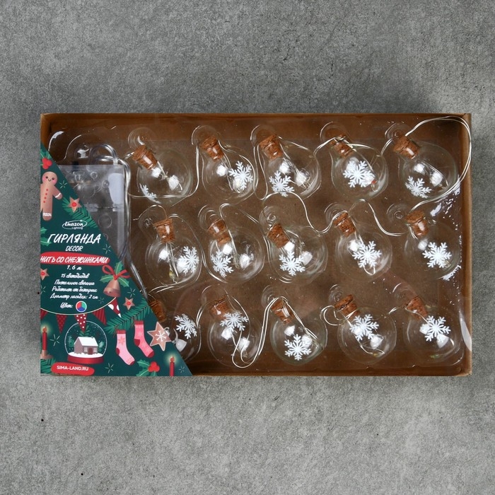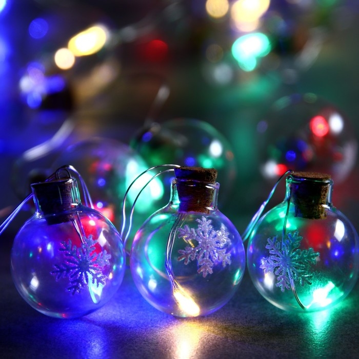 Гирлянда «Нить» 1.6 м с насадками «Шарики со снежинкой», IP20, серебристая нить, 15 LED, батарейки ААх2 (нет в комплекте), свечение мульти