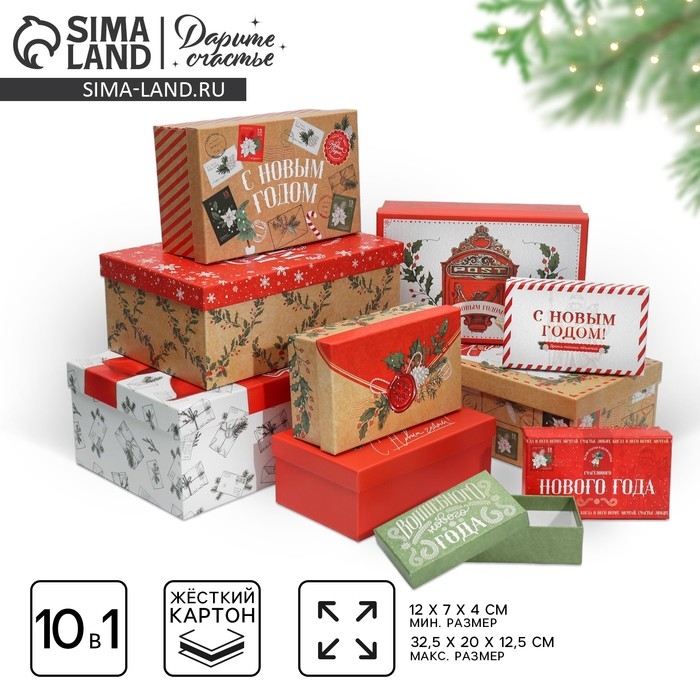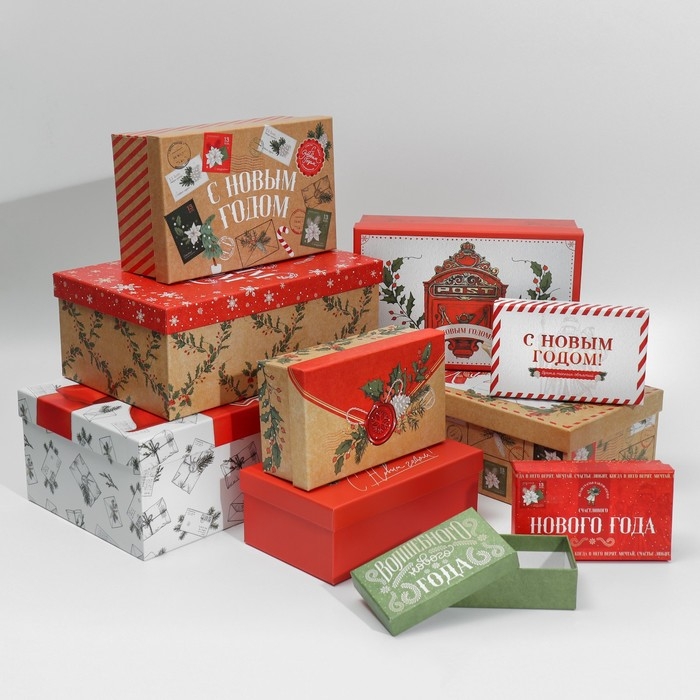 Набор подарочных коробок 10 в 1 «Волшебного Нового года», 12 х 7 х 4 - 32.5 х 20 х 12.5 см, Новый год