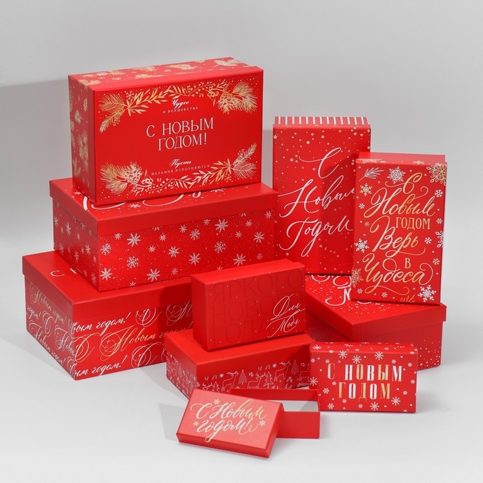 Набор подарочных коробок 10 в 1 «Время чудес», 12 х 7 х 4 - 32.5 х 20 х 12.5 см, Новый год