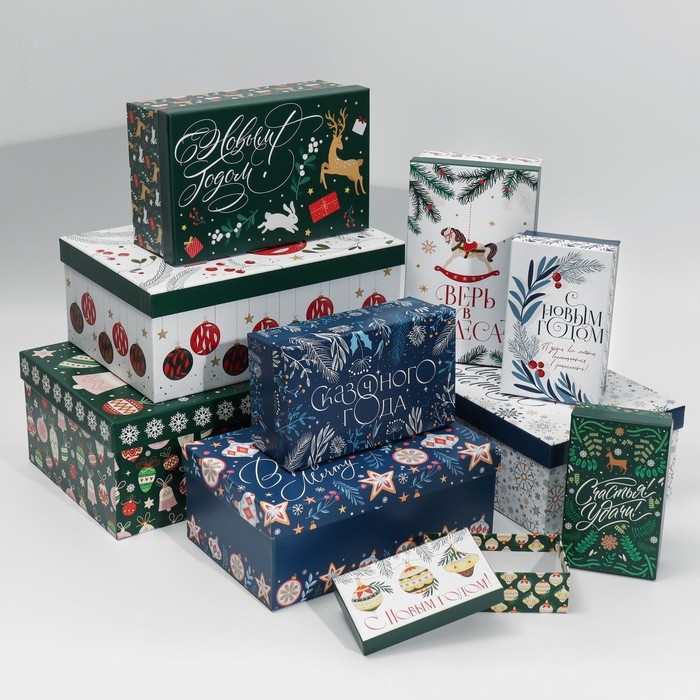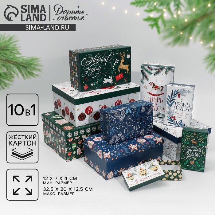 Набор подарочных коробок 10 в 1 «Сказочного года», 12 х 7 х 4 - 32.5 х 20 х 12.5 см, Новый год