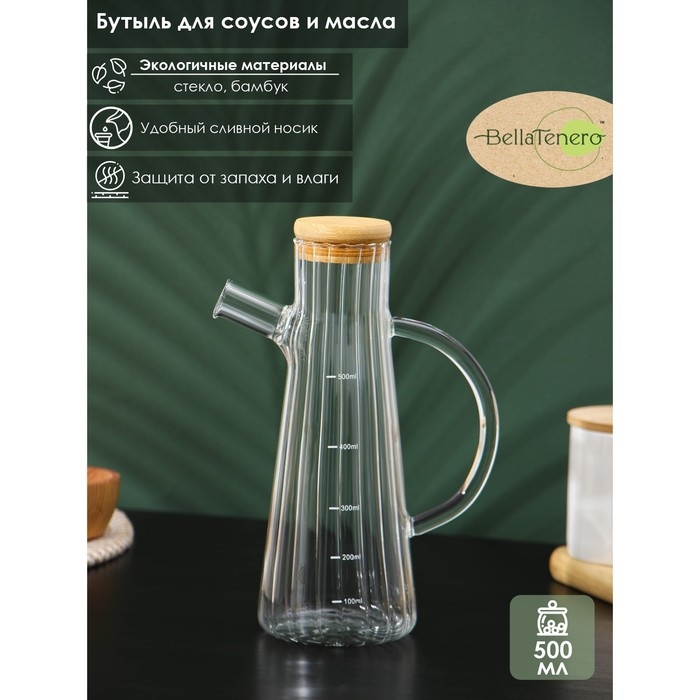 Бутылка стеклянная для соуса и масла с с мерной шкалой BellaTenero «Дафна», 500 мл, 14×22,5 см