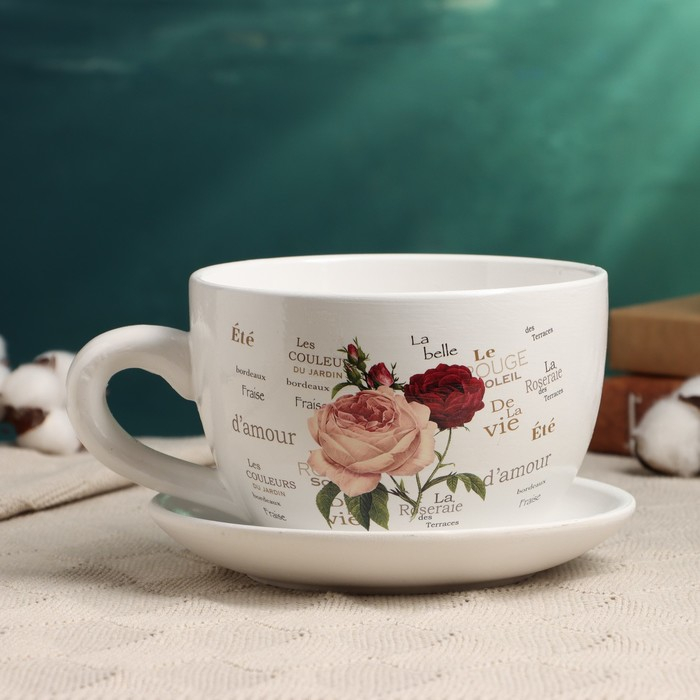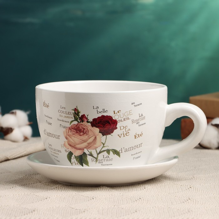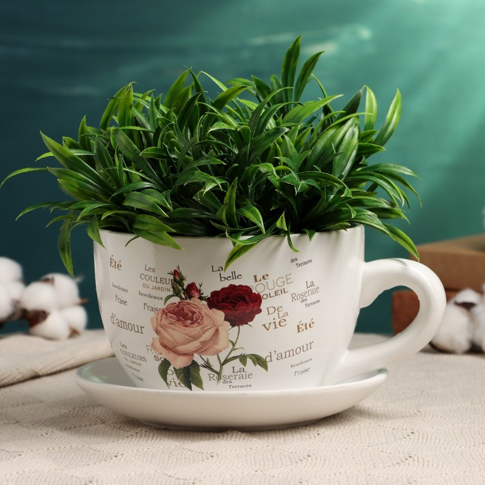 Горшок в форме чашки "Эмма" цветы, 19х15х10см
