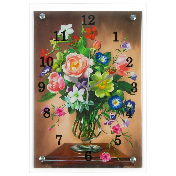 Часы-картина настенные, интерьерные "Разноцветные цветы", бесшумные, 25 х 35 см
