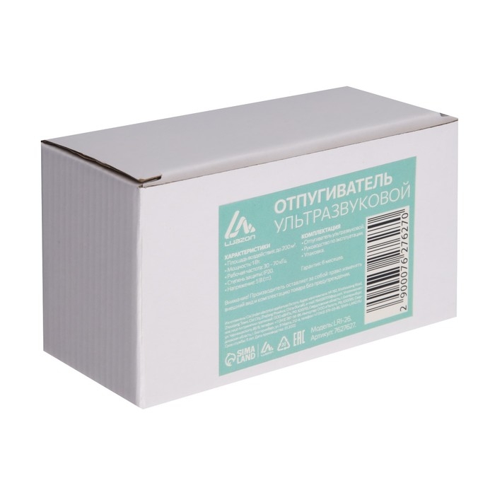 Отпугиватель крыс и насекомых Luazon LRI-11, ультразвуковой, 70 м2, 220 В, белый