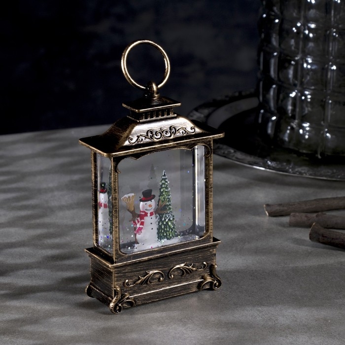 Светодиодная фигура «Фонарь со снеговиком» 7.6 × 13.5 × 3.2 см, пластик, блёстки, батарейки AG13х3 (в комплекте), свечение тёплое белое