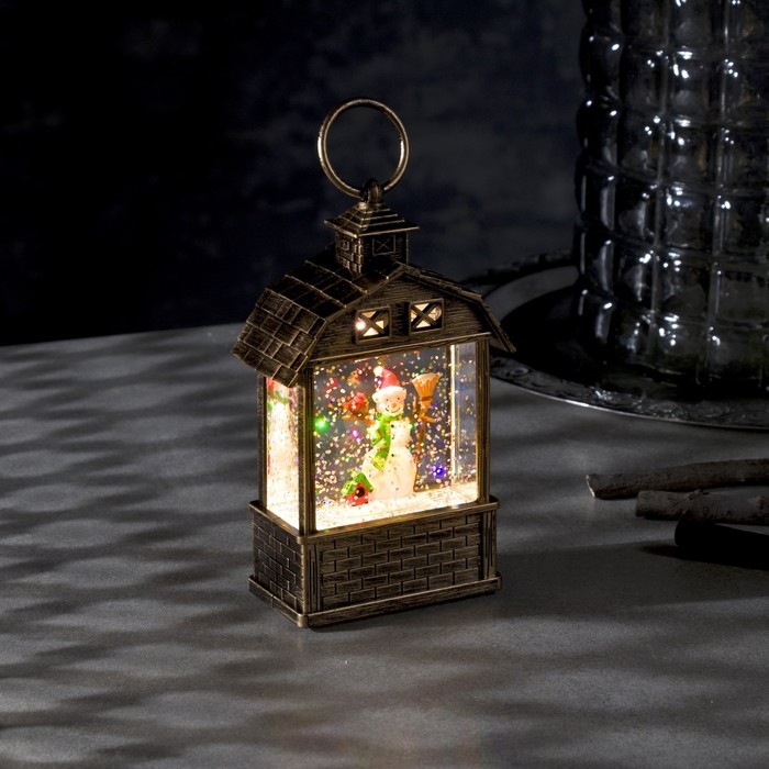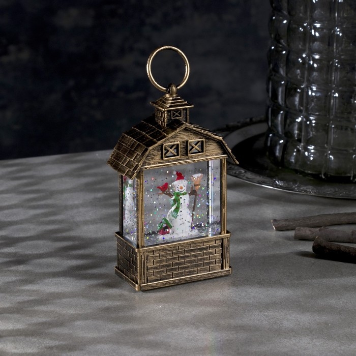 Светодиодная фигура «Фонарь со снеговиком» 7.5 × 14 × 4.2 см, пластик, блёстки, батарейки AG13х3 (в комплекте), свечение тёплое белое