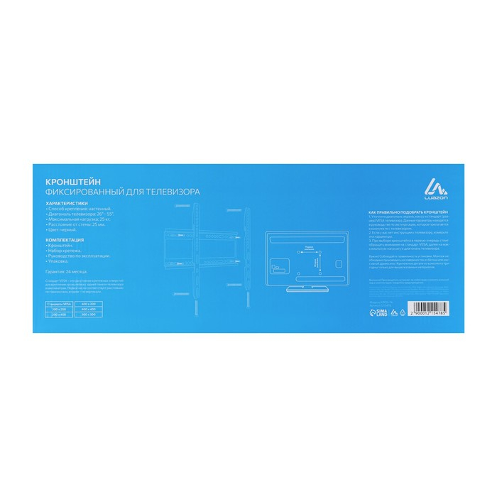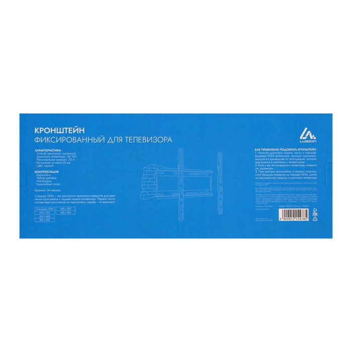 Кронштейн Luazon KrON-74, для ТВ, фиксированный, 26-55", 25 мм от стены, чёрный