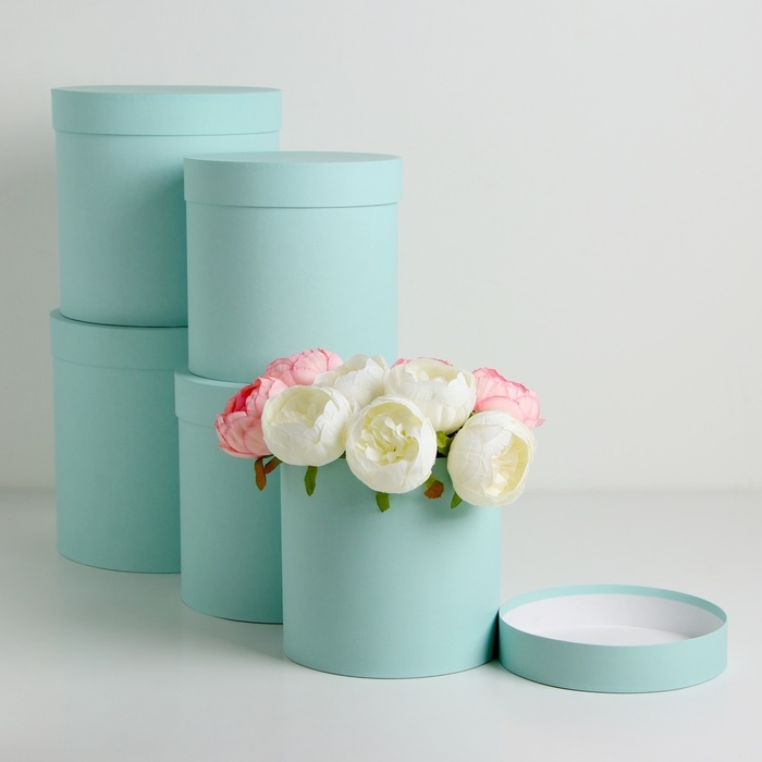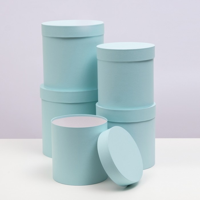 Набор круглых коробок 5 в 1 "Краски" ,бирюзовый, 25 х 25 х 25 - 19 х 19 х 19 см