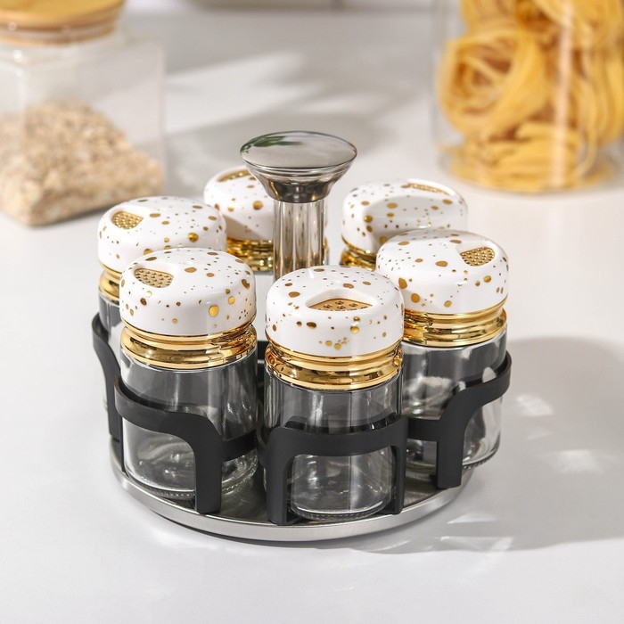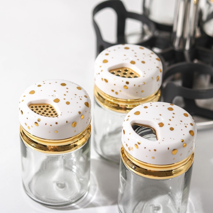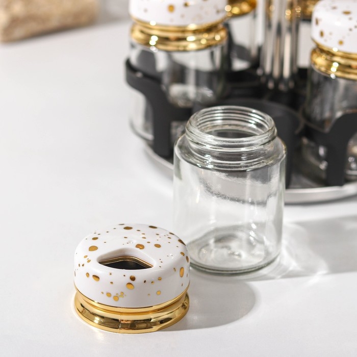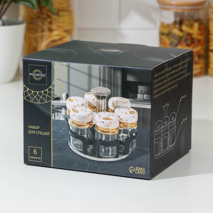 Набор для специй из стекла на подставке Magistro «Белый мрамор», 6 шт, цвет белый