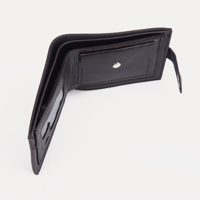 Портмоне мужское на магните, для купюр, для карт, для монет, цвет тёмно-коричневый
