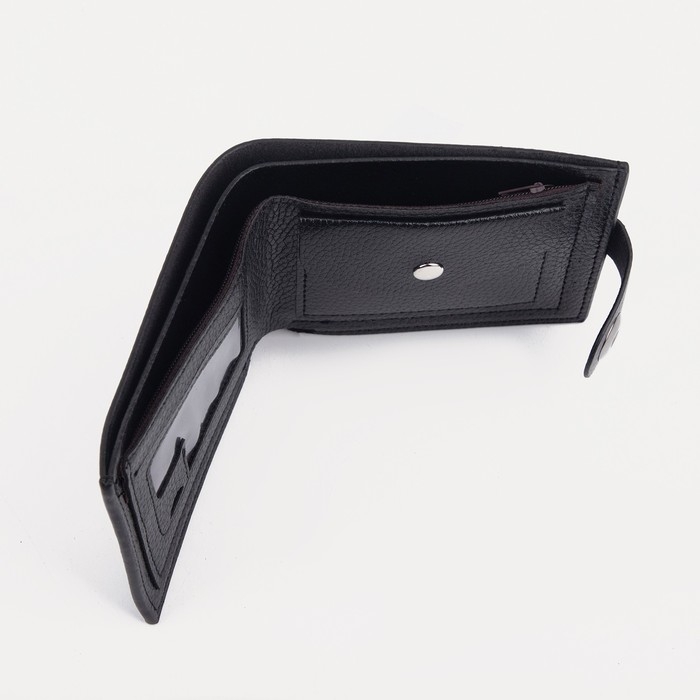 Портмоне мужское на магните, для купюр, для карт, для монет, цвет чёрный