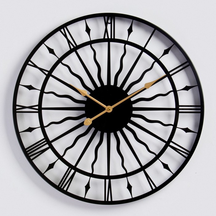 Часы настенные интерьерные большие, Лофт, "Солнце", бесшумные, d-59 см