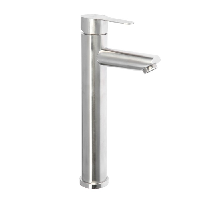 Смеситель для раковины ZEIN ZS 20104, картридж керамика 35 мм, высокий, нерж. сталь, сатин