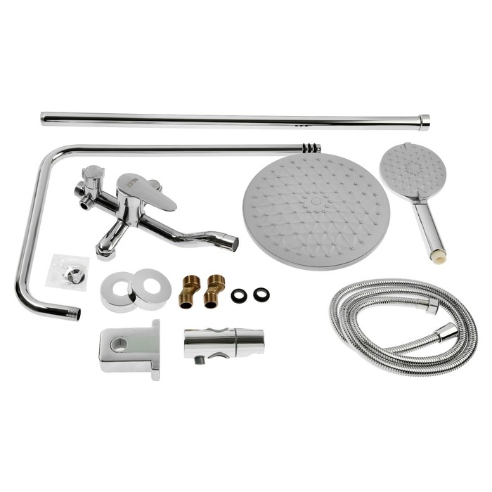 Душевая система ZEIN ZS-1, смеситель, тропическая и ручная лейка 3 режима, латунь, хром