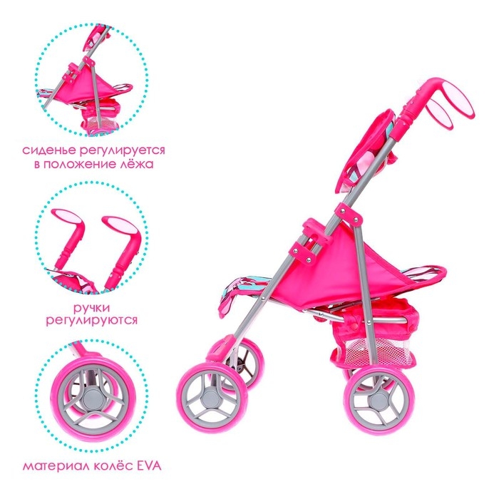 Коляска для кукол летняя, с крышей, ручка регулируется, металл