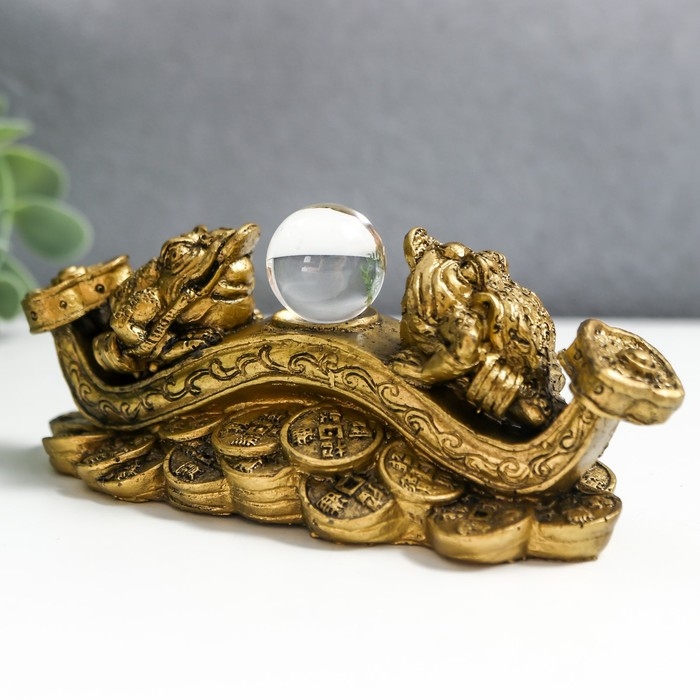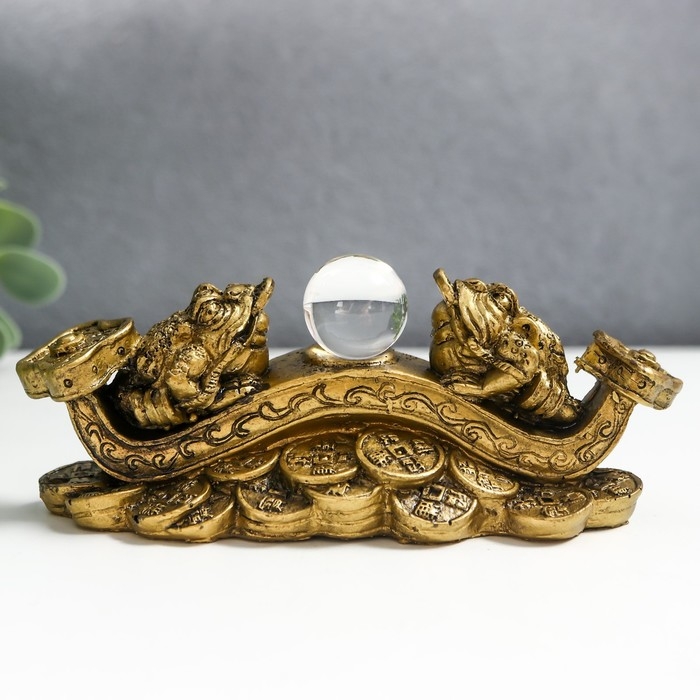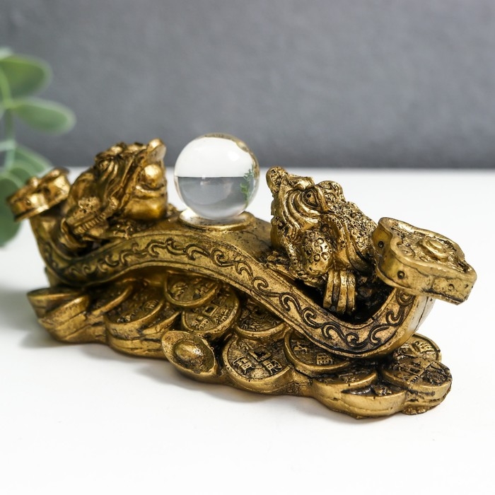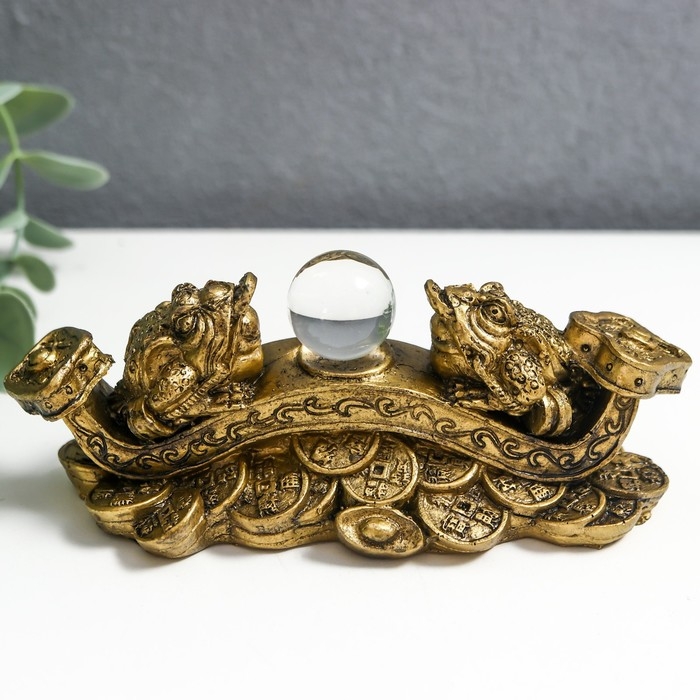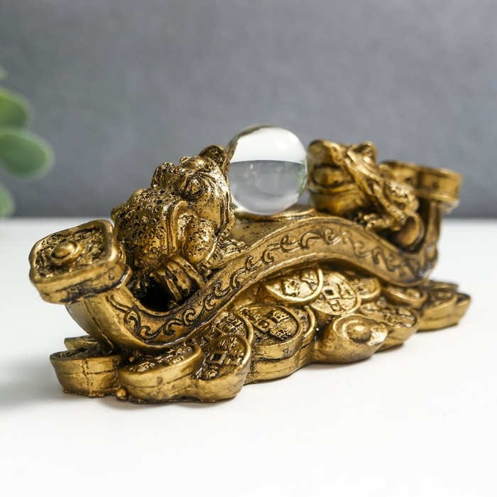 Нэцкэ бронза "Две жабы на жезле Жуи с шаром" 14х6х5 см 1201418