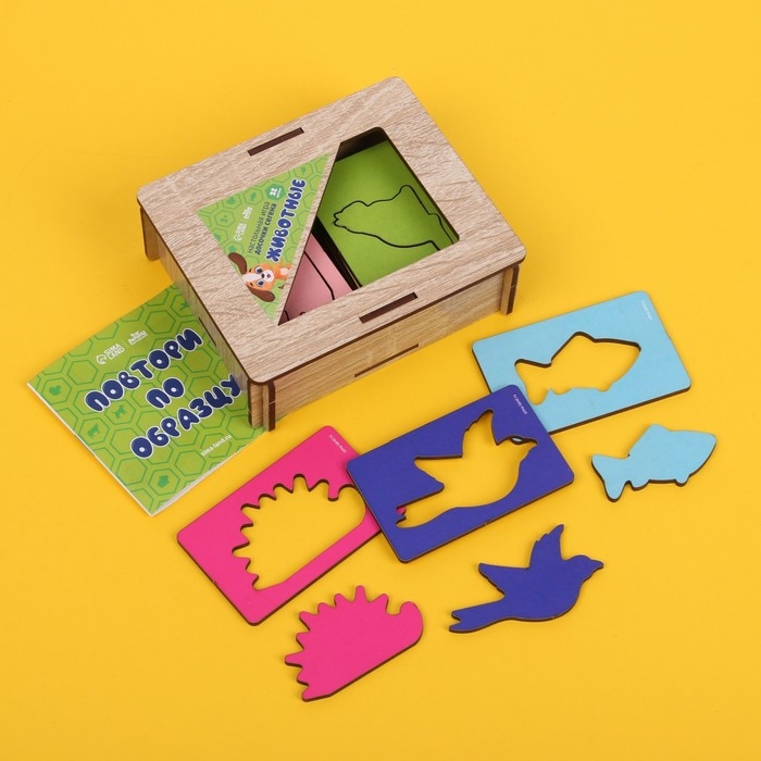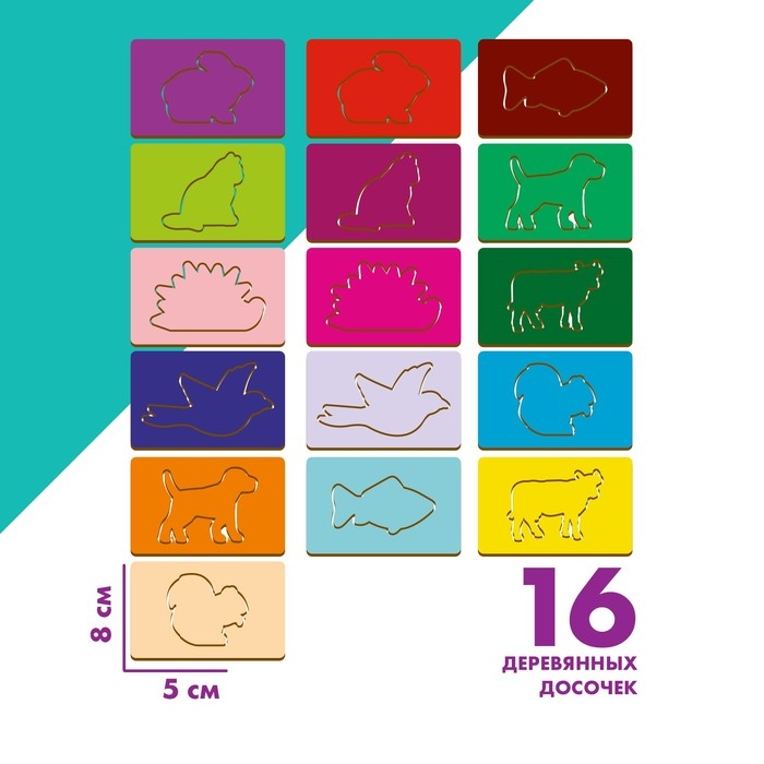 - Детали отличаются по цвету и форме, поэтому подходят для знакомства с названиями цветов и животными.