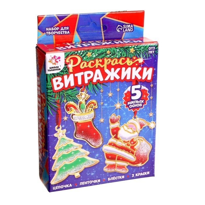 Набор для творчества «Раскрась витражики. Новогодние украшения на ёлку»
