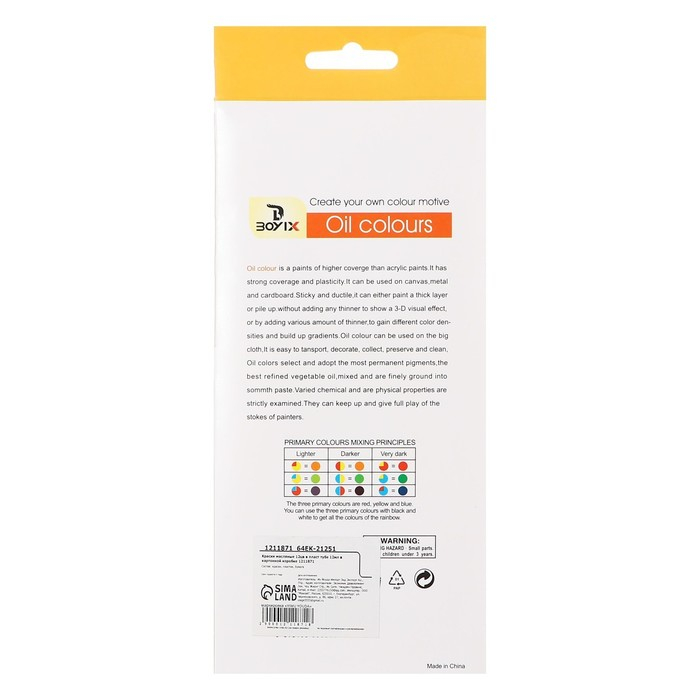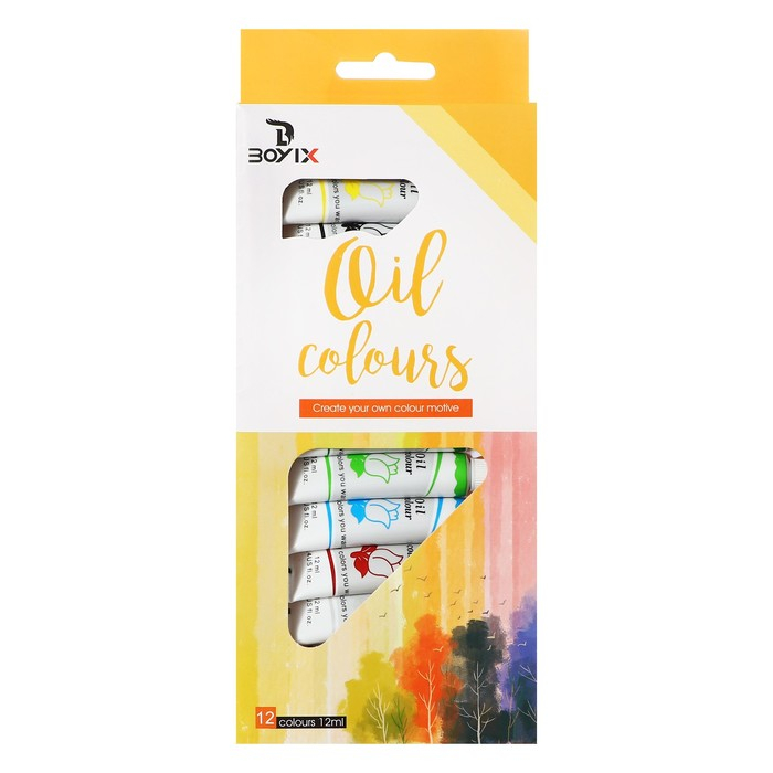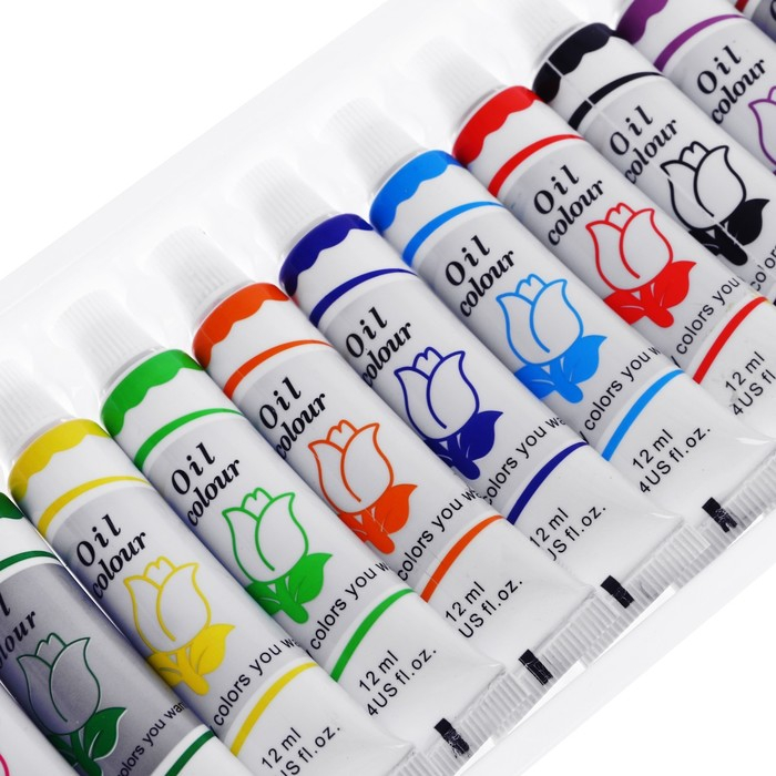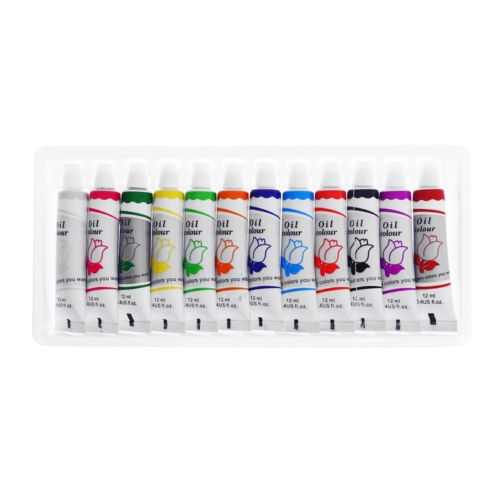 Краски масляные, 12 цветов, в пластиковой тубе, 12 мл, в картонной коробке