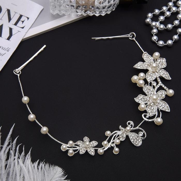 Аксессуар для волос "Цветы с жемчужинками" 26,5х4,3 см