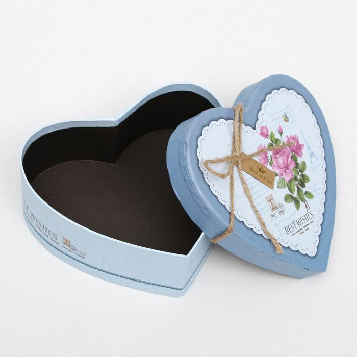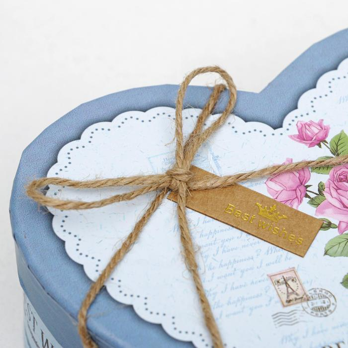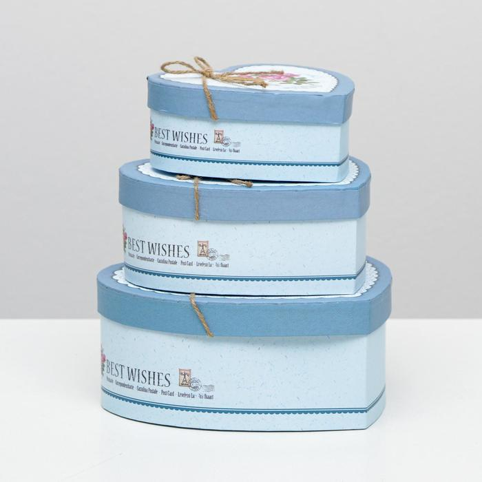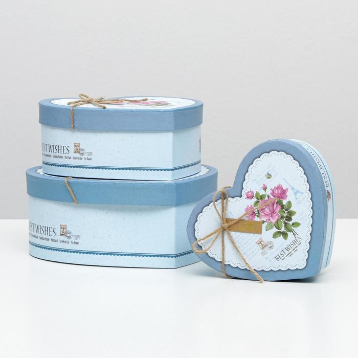 Набор подарочных коробок 3 в 1 сердца «Розы» голубой, 21×19×9 - 15.5×14×6 см