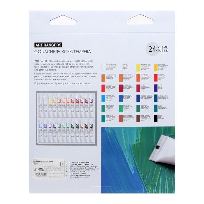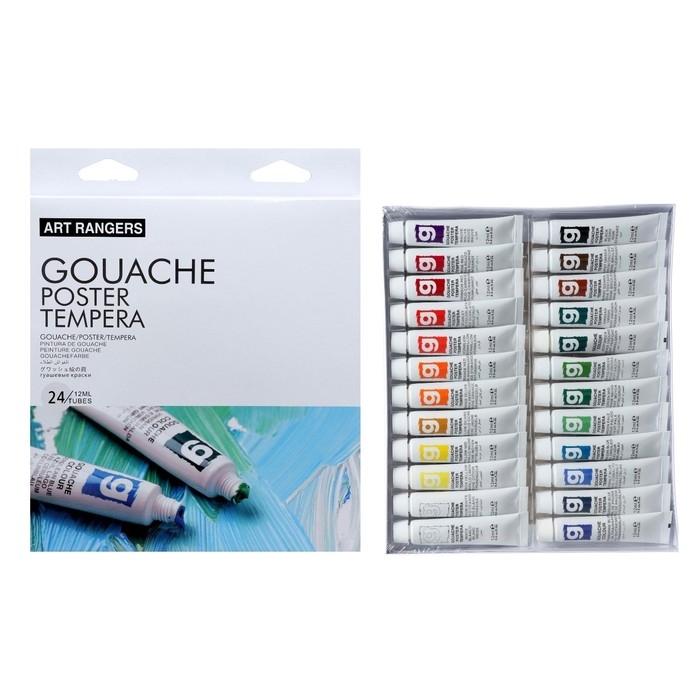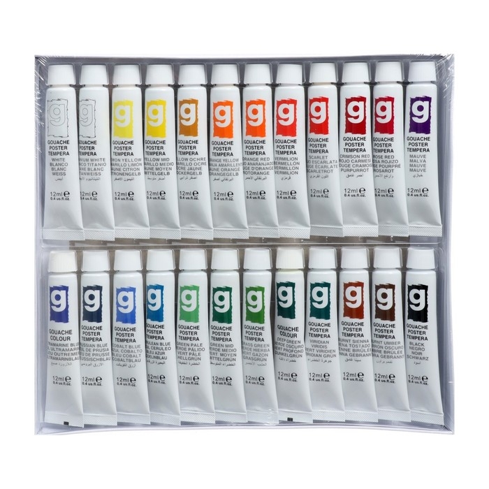 Краски гуашь 12 мл, в металлической тубе, в картонной коробке , 24 цвета