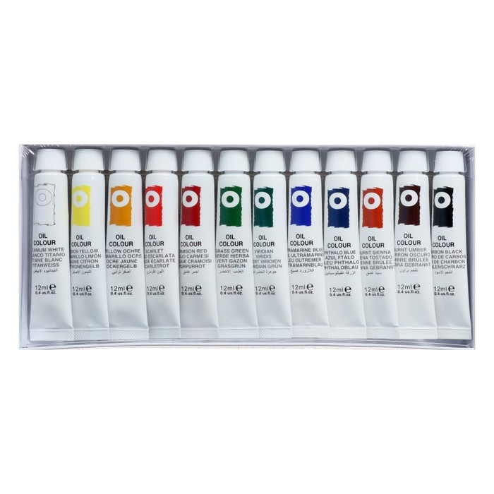 Краски масляные 12 мл, в металлической тубе, в картонной коробке, 12 цветов