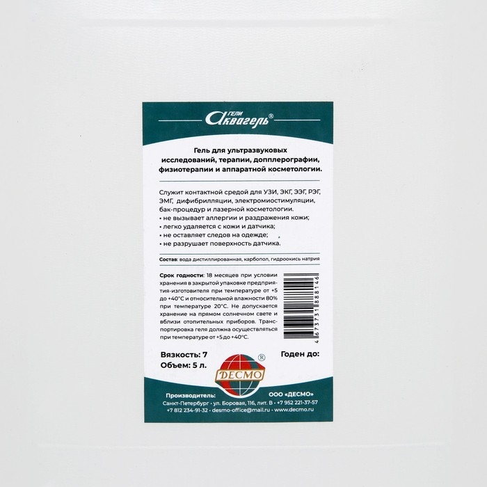 Гель для УЗИ "Аквагель" DECMO высокой вязкости, канистра, 5л