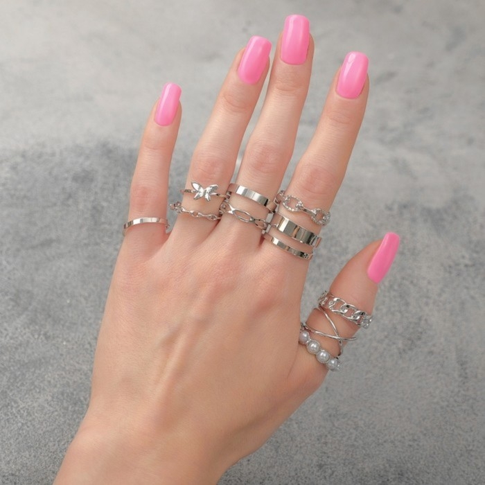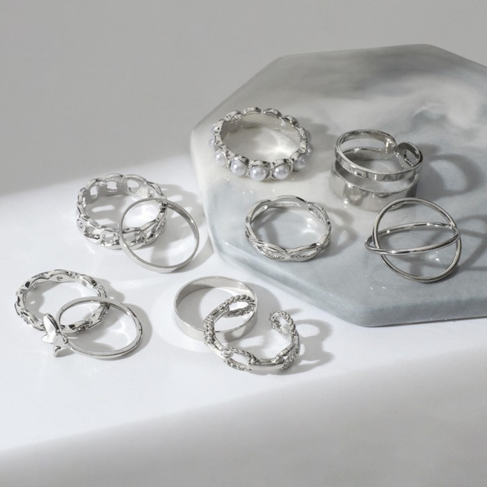 Набор колец 10 штук «Тренд» леди, цвет белый в серебре, размер МИКС