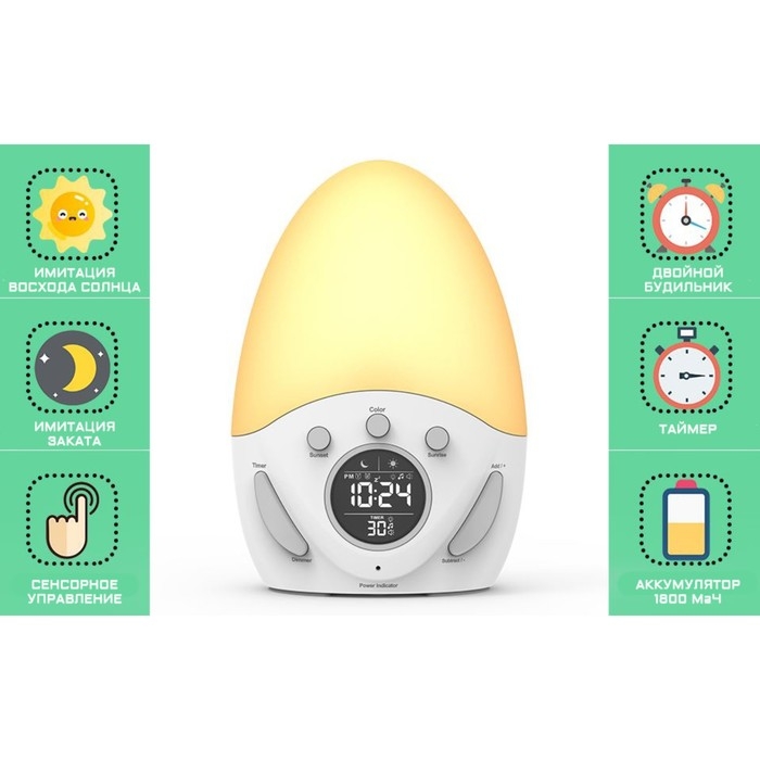 Часы - лампа настольные с будильником, календарем, таймером сна, 10.5 х 18.3 см, USB
