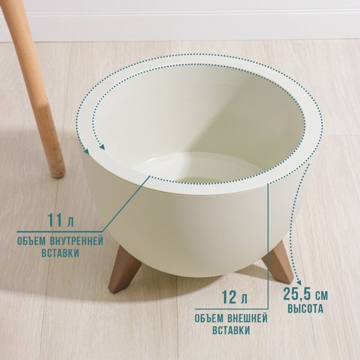Кашпо на ножках «Флориан», 15,5 л (объём внутренней вставки 12 л), d=35 см, h=25,5 см, цвет белый ротанг