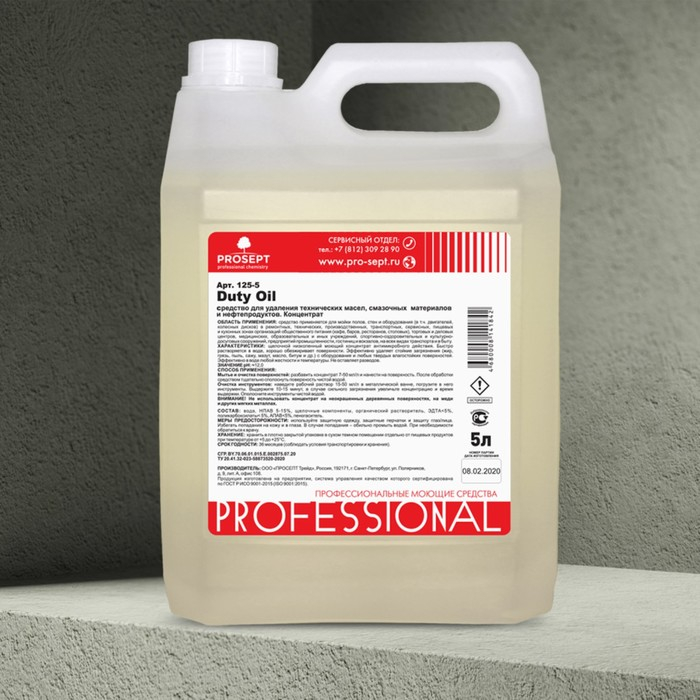 Средство для удаления технических масел, смазочных материалов Duty Oil – щелочной низкопенный моющий концентрат антимикробного действия. Быстро растворяется в воде, хорошо обезжиривает поверхности. Эффективно удаляет стойкие загрязнения (жир, грязь, пыль, сажу, мазут, масло, битум и др.) с оборудования и любых твердых влагостойких поверхностей. Эффективно в воде любой жесткости и температуры. Не обладает аллергическими и кумулятивными свойствами.