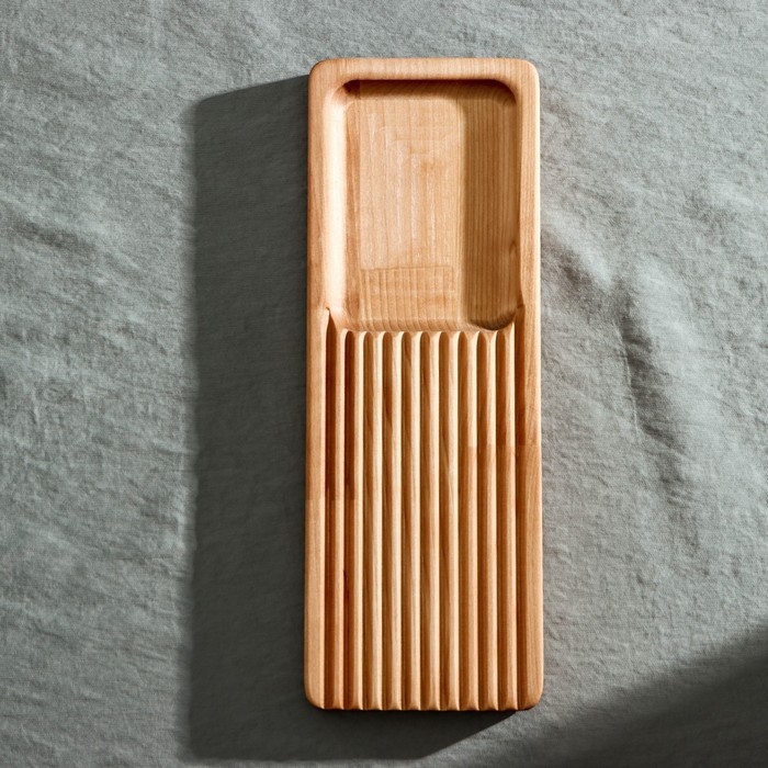 - Очищайте после каждого использования. Разделочную доску обязательно нужно мыть вручную в тёплой воде сразу после использования. Замачивание в раковине повредит изделие, ведь от воды древесина может начать портиться.