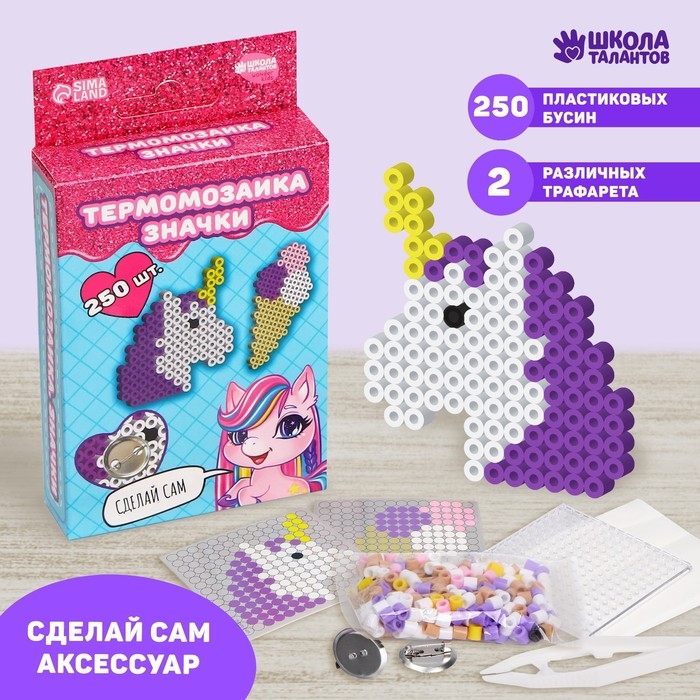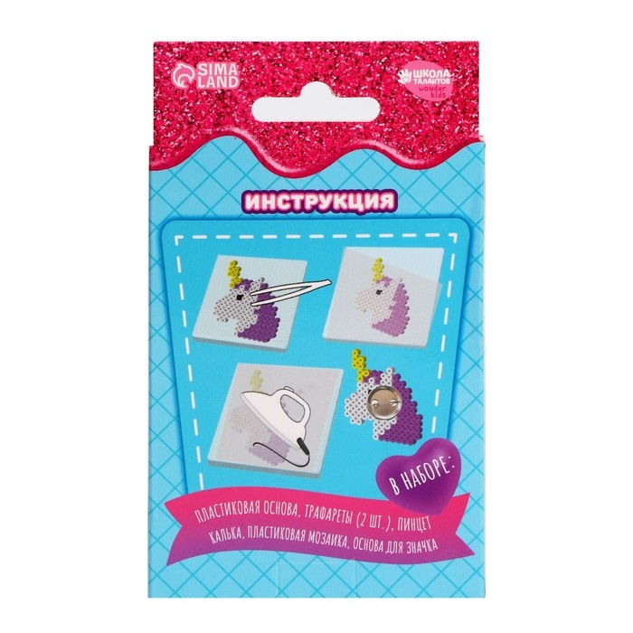 Термомозаика «Милый единорог» с пинцетом, значком