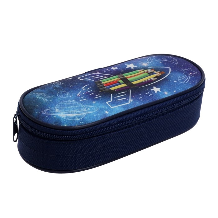 Пенал-футляр 95 х 205 х 45 мм, мягкий, текстильный, Calligrata, ПМК 27-20 резинка на клапане, "Ракета"